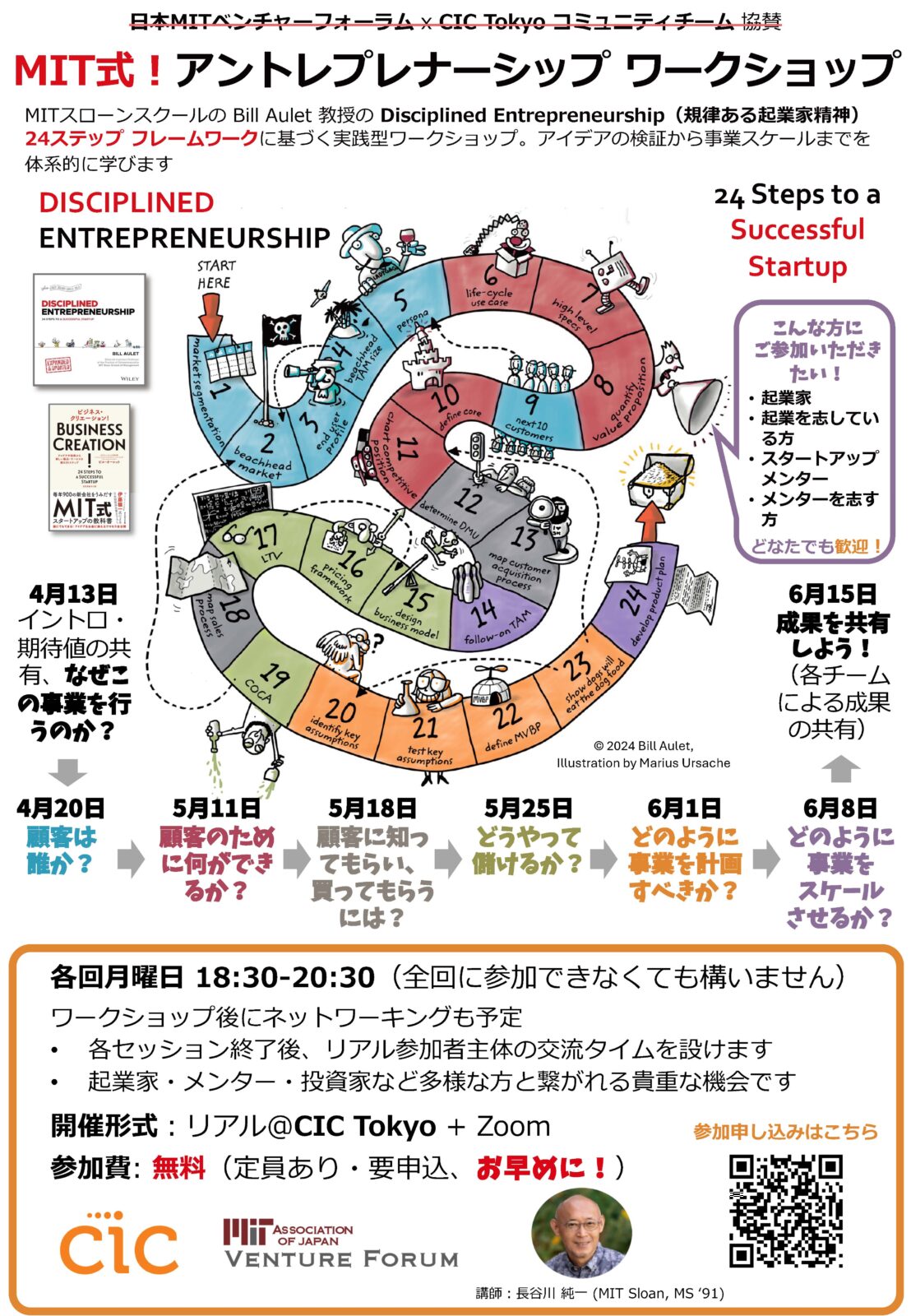 MITスローンスクールの Bill Aulet 教授の Disciplined Entrepreneurship(規律ある起業家精神) 24ステップ フレームワークに基づく実践型ワークショップ。